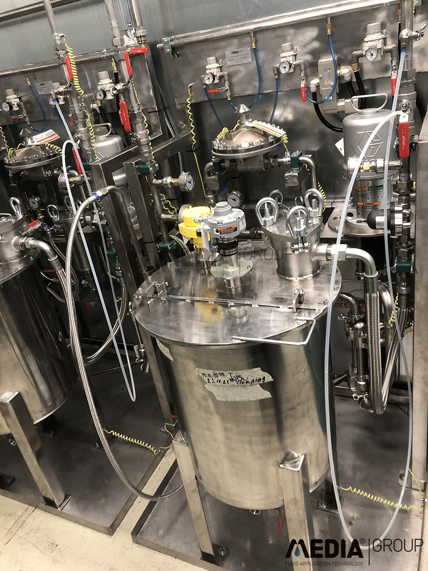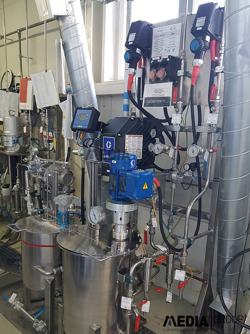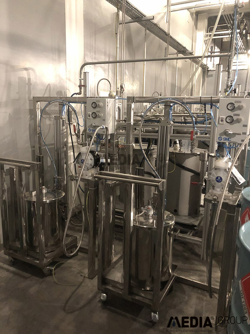 Модули приготовления, хранения и циркуляции краски представляют из себя систему баков, насосов и трубопроводов для подготовки ЛКМ и циркуляции по системе трубопроводов.