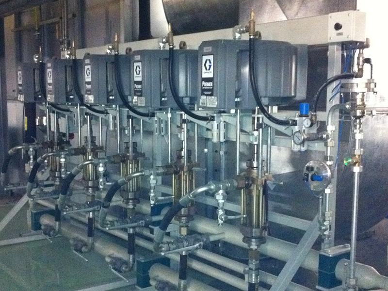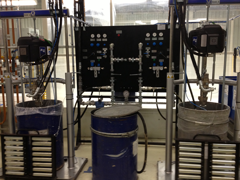 Для нанесения редких цветов на автомобильных заводах обычно используется мини система подачи ЛКМ, которая устанавливается в непосредственной близости от камеры окраски.