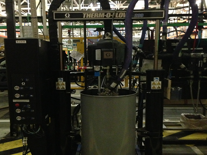 Система подачи и нанесения подогреваемого клея для вклейки автомобильных стекол.