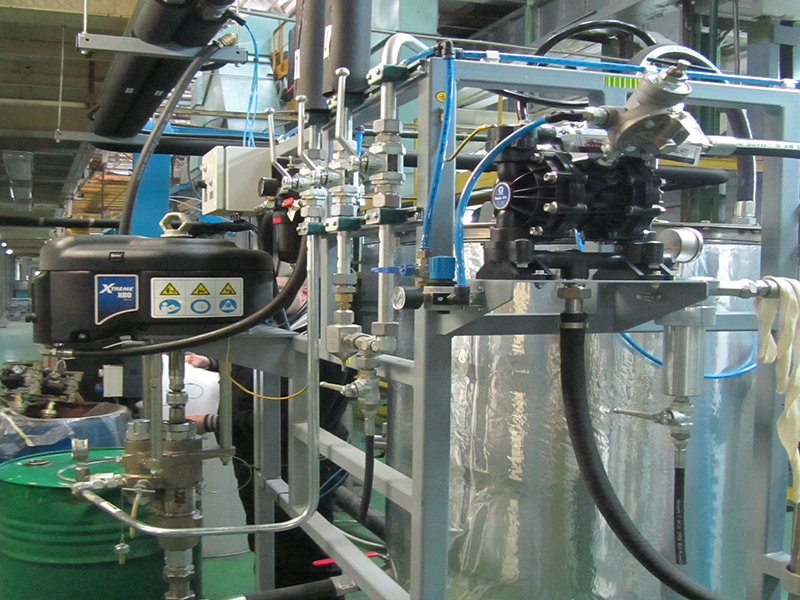 В том случае если линия нанесения мастик находится на значительном удалении от комнаты подготовки, то потери давления по ходу трубопровода очень значительны.